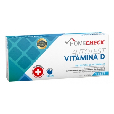 Homecheck Autotest Vitamina D es un inmunoensayo basado en el principio de unión competitiva a proteínas, capaz de mostrar un nivel excesivo, suficiente, insuficiente o deficiente de vitamina D en sangre.