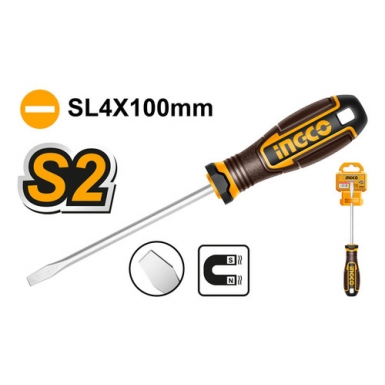Destornillador De Punta Plana Ingco Hsdsl4100 Con Mango Ergonómico De Plástico